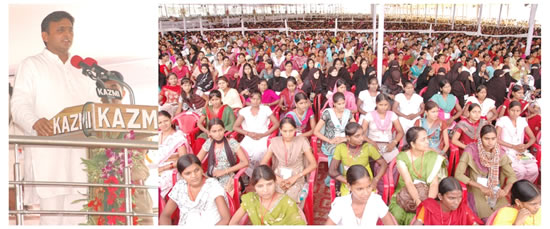 ajamgarh-1मुख्यमंत्री अखिलेश यादव आज आजमगढ़ के आईटीआई मैदान में उत्तर प्रदेश बेरोजगारी भत्ता एवं कन्या विद्या धन योजना के लाभार्थियों के चेक वितरण समारोह के अवसर पर आयोजित कार्यक्रम को सम्बोधित कर रहे थे। मुख्यमंत्री ने जनपद आज़मगढ़ के 12 हजार 222 लाभार्थियों को बेरोजगारी भत्ते की 1 करोड़ 70 लाख 27 हजार की धनराशि के चेक प्रदान किये। लाभार्थियों में 2,781 महिलायें तथा 9,441 पुरुष शामिल थे। इसी प्रकार कन्या विद्या धन योजना के अन्तर्गत 3371 लाभार्थियों में प्रति लाभार्थी 30 हजार रुपये की दर से कुल 10 करोड़ 11 लाख 30 हजार रुपये का चेक प्रदान किये।