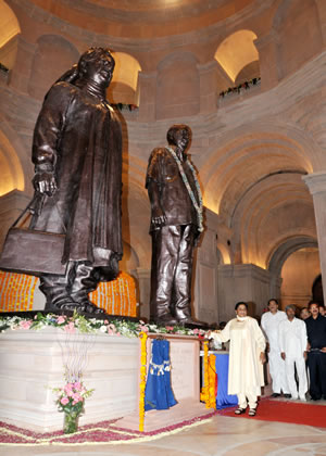 माननीया मुख्यमंत्री जी ने कहा कि देश में दलितों के प्रति शुरू से ही जातिगत द्वेष व हीन भावना रखने वाली कांग्रेस पार्टी की केन्द्रीय सरकार ने इस हजारों एकड़ की जमीन के कुछ हिस्से पर डाॅ0 भीमराव अम्बेडकर तथा मान्यवर श्री कांशीराम जी इन दोनांे महापुरूषों के आदर-सम्मान में इनके स्मारक व संग्रहालय आदि बनवाना उचित नहीं समझा, जिसको लेकर पूरे देश में इनको मानने वाले लोग काफी ज्यादा दुःखी थे। इस कमी को अब उनकी सरकार ने दूर कर दिया है। इसीलिए दिल्ली में यमुना नदी के पश्चिमी तट पर जहाँ एक तरफ नेहरू व गाँधी परिवार से जुड़े स्मारक व संग्रहालय आदि स्थापित किये गये हैं। वहीं दूसरी तरफ उनकी पार्टी की सरकार ने यमुना नदी से लगे पूर्वी तट पर हमारे दलित महापुरूषों के स्मारक व संग्रहालय आदि भी अब निर्मित कर दिये हैं।