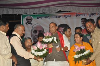 01-optimizedभारतीय जनता पार्टी के पूर्व राष्ट्रीय अध्यक्ष राजनाथ सिंह ने चुनावी सभा को संबोधित करते हुए कहा कि अब यह बात खुलकर सामने आ गई है कि विेदशों में काफी बड़ी मात्रा में कालाधन जमा है। भारत की सबसे बड़ी जांच एजेंसी सी.बी.आई. के निदेशक (डायरेक्टर) ने इस बारे में सार्वजनिक रूप से कहा है कि भारत का करीब 500 अरब डालर यानी 25 लाख करोड़ रूपए का कालाधन विदेशी बैंकों में जमा है।