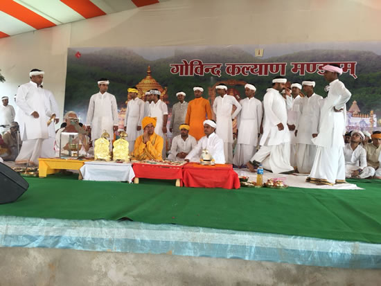 आज प्रातः संत शिरोमणि श्री रविशंकर जी महाराज ‘‘रावतपुरा सरकार’’ द्वारा प्रातः 9.00 बजे गोविन्दाकल्याण मण्डपम्् मे कलश पूजन, गणेश पूजन, वरूण पूजन कर कलश यात्रा का शुभारंभ किया। वैदिक मंत्रो द्वारा पूजाअर्चन वनारस से आये पं. सुनील त्रिवेदी ने सर्वप्रथम कलश का पूजन, शालीग्राम जी का महाभिषेक एवं 501 पंडितो द्वारा पूजन किया गया। इसके बाद कलश यात्रा यज्ञ शाला पहुंची। यज्ञ शाला यज्ञ आरंभ होने से पूर्व करीब 1008 कलश लेकर श्रद्धालु जन यज्ञशाला पहंुचे। अवसर पर संत शिरोमणिश्री रविशंकर जी महाराज ‘‘रावतपुरा सरकार’’ भी सबसे आगे कलश सिर पर रखकर चल रहे थे। उन्होने हजारों भक्तजनों के साथ यज्ञ शाला की परिक्रमा की। गोविन्दा कल्याण मण्डपम्् से यज्ञ शाला स्थल पहंुचने के बाद भी श्रुद्धालुओं की कतार करीब आधे घंटे तक लगी रही। महिलाओं की अच्छी भागीदारी होने पर भी कलश कम पड़ गये। तब श्रद्धालुओं ने लोटो का उपयोग कर कलश यात्रा में शामिल हुये।