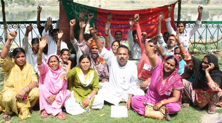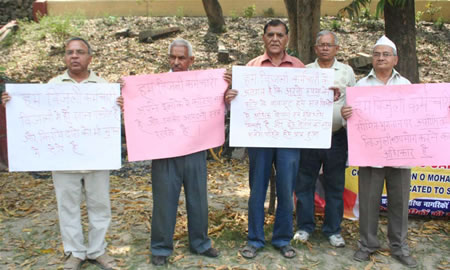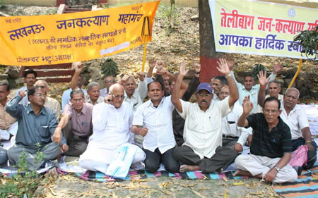 लखनऊ जन कल्याण महा मंच के सदस्यो ने अपनी माँगो को लेकर शहीद स्मारक पर दिया धरना