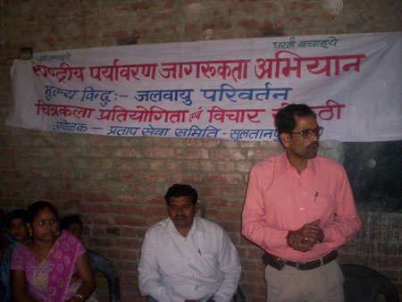 वन प्रभाग एवं प्रताप सेवा समिति के सयुक्त तत्वाधान में बेबी किण्डरगार्टन जू0 हा0 स्कूल वैश्णव नगर गभड़िया में जलवायु परिवर्तन विशय पर एक विचार गोश्ठी का आयोजन किया गया। गोश्ठी में बोलते हुए राश्ट्रीय युवा पुरूस्कार से सम्मानित सत्य नाथ पाठक ने कहा कि जल ही जीवन है ाबिना स्वच्छ जल ,स्वच्छ वायु के अभाव में जीवन दुर्लभ है। स्वच्छ जल न मिलने के कारण तरह- तरह की बीमारियॉ हमारे शरीर में जन्म ले रही हैंं । संस्था सचिव विजय विद्रोही ने  बच्चों व उपस्थित समुदाय से अपील किया कि वे अपने जन्म दिवस व शुभ अवसरों पर तुलसी का पौधा अवश्य लगावें। तुलसी का पौधे का धार्मिक महत्व ही नहीं है बल्कि कई प्रकार की बीमारियों राम बाण साबित हो रही है। विद्यालय के अध्यापक  इन्दु कुमार श्रीवास्तव ने कहा कि पर्यावरण चार प्रकार के होते हैं, ध्वनि प्रदूशण कम करने के लिए हम सभी विद्यालय के छात्र- छात्राएं प्रतिज्ञा लेते हैं। विद्यालय के प्रबन्धक जितेन्द्र श्रीवास्तव ने गोश्ठी में आए अतिथियों का आभार प्रकट करते हुए कहा कि हर साल विद्यालय परिवार बृक्षा रोपण अपने संसाधन से करायेगा। गोश्ठी में विद्यालय की प्रधानाचार्या उमा श्रीवास्तव,मीना श्रीवास्तव स0 अ0, रेनू रावत स0अ0, नम्रता सिंह , बन्दना मिश्रा आदि ने अपने विचार व्यक्त किये।