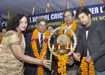 01Internationally renowned cricketer and member of Indian CricketTeam lighting the lamp to inaugurate the Closing and  Prize Distribution Ceremony of 1st International School Cricket Premier League (ISCPL-2011) organized by CMS Kanpur Road campus. With him are Mr Jagdish Gandhi, Founder CMS and Principal of CMS Kanpur Road, Dr (Mrs) Vineeta Kamran.