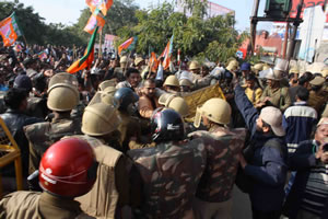 विगत शुक्रवार को हुये बवाल के बाद पुलिस का रवैया और सत हो गया और ााजपा नेताओं की धड पकड के लिए रातार दबिश्ों दी। रात्रि में सांसद प्रतिनिधिय अçालेश चौहान और कागारौल निवासी अशोक लवानिया¡ के घर रात्रि में कई बार दबिशें दी। इसके अलावा पुलिस कई अन्य ााजपा नेताओं के घरों पर रात्रि में डेरा डाले रही लेकिन किसी ाी प्रमुा नेता की गिरतारी नहीं हो सकी। इस सम्बंध में एसओ नाई की मण्डी ने बताया कि बॉबी और सुरेन्द्र की गिरतारी हो चुकी है और अन्य ााजपाईयों की गिरतारी के प्रयास किये जा रहे हैं। गौरतलब है कि सांसद और ााजपाईयों के çालाफ एक मुकदमा इंस्पेक्टर लोहामण्डी द्वारा धारा 147,148,336,332,3भ्3,436,भ्11,304,341 आईपीसी और 7 सीएलए के तहत दूसरा मुकदमा एसओ नाई की मण्डी द्वारा एमजी रोड पर जाम लगाने के मामले में और तीसरा एसआई वेदपाल की ओर से कलेक्ट्रेट में तोडफोड करने के मामले में धारा 147,327 आईपीसी और 3/भ् राजकीय संपçत्त निवारण अधिनियम के तहत दर्ज कराया गया है। मुकदमों से सैकडों ााजपाईयों को ाी अज्ञात बताया गया है। उधर अकोला में पुलिस द्वारा की गई दबिश के बाद सुबह होते ही लोग उžोजित हो गये। उन्होंने बाजार बन्द करवा दिया। उनका कहना था कि समस्याएं उठाने पर पुलिस जुल्म कर रही है।