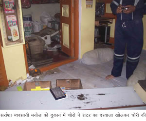 photo_no1मुंगराबादशाहपुर - स्थानीय क्षेत्र थाने से महज दो सौ मीटर की दूरी पर स्थित बादशाहपुर नगर के मुख्य बाजार स्थित मुहल्ला नईगंज में चोरों ने बुधवार की रात्रि में तीन दुकानों का ताला तोड़कर लाखों के जेवरात चोरी कर ले गये। चोरों केवल सर्राफा व्यवसाइयों को निशाना बनाया। चोरों ने एक दुकान में शटर तोड़ने का प्रयास किया मगर असफल रहें।