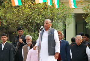 श्री मुलायम सिंह यादव ने प्रारम्भ में सभी को गणतन्त्र दिवस की बधाई देते हुए उन शहीदों को नमन किया जिन्होने आजादी की लड़ाई में अपना सर्वस्व होम कर दिया। उन्होने कहा गांधी जी के नेतृत्व में आजादी की बड़ी लड़ाई लड़ी गई जिसमें छात्र,नौजवान, महिलाएं, किसान-बुद्धिजीवी सभी शामिल हुए। लेकिन भगत सिंह और नेताजी सुभाशचन्द्र बोस को भी हम नहीं भुला सकते हैं जिनके संघशZ ने अंग्रेजों को भारत छोड़ने को विवश कर दिया। श्री मुलायम सिंह यादव के 5- विक्रमादित्य मार्ग आवास पर भी ध्वजारोहण कार्यक्रम सम्पन्न हुआ।
