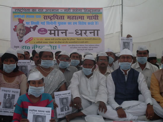sdc10816डा0 बोरा ने कहा कि आज हम एक दिवसीय मौन धरना के माध्यम से भारत के प्रधानमंत्री से यह मांग करते हैं कि इस राष्ट्रीय अपमान के दृष्टिगत उक्त किताब को भारत में प्रतिबन्धित करने तथा संयुक्त राष्ट्र संघ सहित दुनिया के  सभी देशों से आग्रह कर उक्त पुस्तक के प्रकाशन-वितरण अनुवाद एवं पुनर्मुद्रण पर रोक लगायी जाय। उन्होंने यह भी मांग किया कि भारतवासियों की जनभावना से अमेरिकी राष्ट्रपति को अवगत कराया जाय तथा उक्त पुस्तक की सभी प्रतियां जब्त करने, लेखक-मुद्रक व प्रकाशक के विरूद्ध कठोर कार्यवाही करते हुए दुनिया के गांधीवादियों से माफी मांगने हेतु अमेरिका को बाध्य किया जाय।