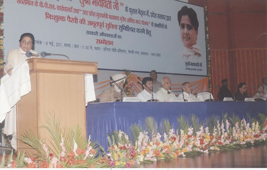मुख्यमंत्री ने कहा कि इसी क्रम में राज्य सरकार ने “14 अप्रैल, 2011” को “परम पूज्य बाबा साहेब डाॅ0 भीमराव अम्बेडकर” की 120वीं जयन्ती के शुभ अवसर पर एक ऐतिहासिक फैसला लिया, जो पूरे देश में इस तरह का पहला फैसला है। उन्होंने कहा कि उनकी सरकार ने “बी0पी0एल0 कार्ड धारकों” तथा “उत्तर प्रदेश मुख्यमंत्री महामाया गरीब आर्थिक मदद योजना” के लाभार्थियों के सभी प्रकार के लम्बित व दायर किए जाने वाले मुकदमें, जिसमें सरकार विपक्षी पार्टी नहीं है, उनमें सरकारी वकील इन गरीबों की तरफ से निःशुल्क पैरवी करेंगे। उन्होंने आशा व्यक्त की कि उनकी सरकार के इस महत्वपूर्ण एवं ऐतिहासिक फैसले से अब कोई गरीब धन के कारण अपने वाजिब हक से वंचित नहीं होगा।