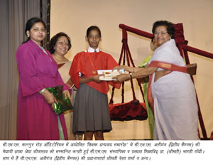 इससे पहले समारोह का शुभारम्भ सी.एम.एस. चैक के शिक्षकों द्वारा प्रस्तुत स्कूल प्रार्थना से हुआ। तत्पश्चात् सी.एम.एस. अलीगंज के शिक्षकों ने वल्र्ड पार्लियामेन्ट के प्रस्तुतीकरण द्वारा ‘बालकों में बढ़ती हिंसात्मक प्रवृत्ति’ पर विचार व्यक्त किए। इस अवसर पर संगीत शिक्षकों द्वारा प्रस्तुत ‘दीपगान’ एवं सी.एम.एस. अशर्फाबाद कैम्पस द्वारा प्रस्तुत कोरियोग्राफी ‘हरि मेरे घर को यह वर दो..’ सारे माहौल को संगीतमय बना दिया।