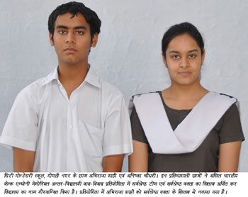 सिटी मोन्टेसरी स्कूल, गोमती नगर के मेधावी छात्रों अभिराजा शाही व अनिष्का चैधरी ने अखिल भारतीय फ्रेन्क एन्थोनी मेमोरियल अन्तर-विद्यालयी वाद-विवाद प्रतियोगिता में सर्वश्रेष्ठ टीम एवं सर्वश्रेष्ठ वक्ता का खिताब अर्जित कर विद्यालय का नाम गौरवान्वित किया है। यह जानकारी सी.एम.एस. के मुख्य जन-सम्पर्क अधिकारी श्री हरि ओम शर्मा ने दी है। श्री शर्मा ने बताया कि यह प्रतिष्ठित प्रतियोगिता काउन्सिल फाॅर द इण्डियन स्कूल सार्टिफिकेट एक्जामिनेशन, नई दिल्ली के तत्वावधान में सम्पन्न हुई, जिसमें सी.एम.एस. गोमती नगर के इन मेधावी छात्रों ने अपने ज्ञान-विज्ञान, तार्किक क्षमता व अभिव्यक्ति की क्षमता का शानदार उदारहण प्रस्तुत करते हुए सर्वश्रेष्ठ टीम का खिताब अर्जित किया किया। इसके अलावा विद्यालय के अत्यन्त मेधावी छात्र अभिराजा शाही ने सारगर्भित, मानवीय तथा तथ्यपूर्ण धाराप्रवाह विचार व्यक्त कर सर्वश्रेष्ठ वक्ता का खिताब अर्जित किया जबकि अनिष्का