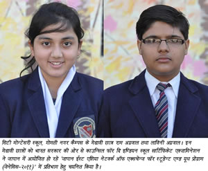 सिटी मोन्टेसरी स्कूल, गोमती नगर कैम्पस के दो मेधावी छात्रों राम अग्रवाल तथा लाविनी अग्रवाल  को भारत सरकार की ओर से काउन्सिल फाॅर दि इण्डियन स्कूल सार्टिफिकेट एक्जामिनेशन ने जापान में आयोजित हो रहे ‘जापान ईस्ट एशिया नेटवर्क आॅफ एक्सचेन्ज फाॅर स्टूडेन्ट एण्ड यूथ प्रोग्राम (जेनेसिस-2011)’ में प्रतिभाग हेतु चयनित किया है जो कि सी.एम.एस. के लिए गर्व की बात है। यह जानकारी सी.एम.एस. के मुख्य जन-सम्पर्क अधिकारी श्री हरि ओम शर्मा ने दी है। श्री शर्मा ने बताया कि जापान सरकार द्वारा आयोजित जेनेसिस-2011 ऐसा अनूठा अन्तर्राष्ट्रीय प्रोग्राम है जो दो देशों के युवा छात्रों को अपनी सभ्यता, संस्कृति, शिक्षा, ज्ञान-विज्ञान, रहन-सहन, रीति-रिवाज, खान-पान, कला-संगीत आदि के आदान-प्रदान का अवसर उपलब्ध कराता है। इस प्रोग्राम का उद्देश्य युवा छात्रों को आपसी मित्रता का प्रशिक्षण देकर विश्व बन्धुत्व, विश्व एकता एवं विश्व शान्ति की भावना को विकसित करना है। जेनेसिस-2011 हेतु चयनित सी.एम.एस. के मेधावी छात्रों को जापान सरकार द्वारा विशेष रूप से आमन्त्रित किया गया है और इस यात्रा का सारा खर्च जापान सरकार द्वारा वहन किया जायेगा।
