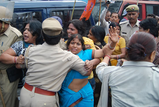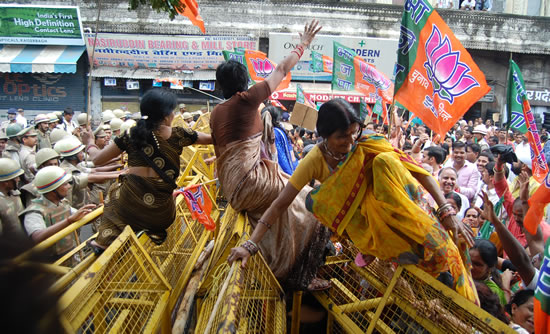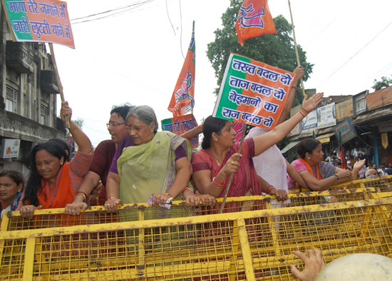 भाजपा नेताओं ने भाजपा महिला मोर्चा के आह्वान पर आज राजभवन जा रही महिलाओं पर मायावती सरकार द्वारा बल प्रयोग करने की कड़ी निन्दा की। भारतीय जनता पार्टी के राष्ट्रीय उपाध्यक्ष एवं चुनाव अभियान समिति के संयोजक कलराज मिश्र तथा लखनऊ के सांसद लाल जी टण्डन ने मायावती सरकार को तानाशाह बताते हुए कहा कि महिलाएं अपहरण, हत्या, महंगाई के विरोध में राजभवन जाकर अपनी बात बताना चाहती थी। उनके ऊपर बलप्रयोग कर गिरफ्तार किया गया। नेता द्वय ने सरकार के इस रवैये की कड़े शब्दों में निन्दा की। बसपा सरकार ने बल प्रयोग शांतिपूर्वक मार्च पर अशांति फैलाने का घृणित काम किया है।