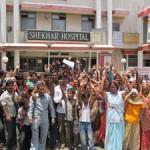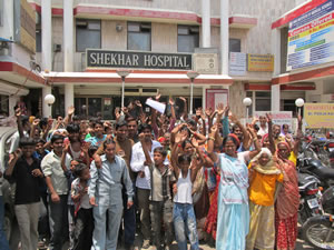गाजीपुर गावं के लोग ने शेखर अस्पताल का घेराव किया