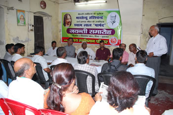 dsc_0017वैश्य स्वाभिमान परिवार द्वारा आज हिन्दी साहित्य के युग प्रवत्र्तक भारतेन्दू हरिश्चन्द्र एवं ‘विजयी विश्व तिरंगा प्यारा’ के रचयिता पद्मश्री श्यामलाल गुप्त पार्षद की जयन्ती मनायी गयी। इस मौके पर उक्त दोनों वैश्य महापुरूषों के व्यक्तित्व, विचार एवं कृतित्वों पर चर्चा हुई तथा समाज के प्रमुख लोगों, साहित्यकारों एवं बुद्धिजीवियों ने श्रद्धासुमन अर्पित किये।