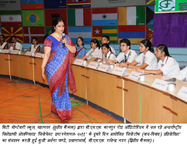 The second day of the four-day International Geography Olympiad ‘Geofest International-2011′ organized by City Montessori School, Mahanagar (Campus III) was very interesting. Over 500 students came from Mauritius, Bulgaria, Nepal and several states of India contested for various competitions in Geofest and also gave the message of environment protection through the events. The young geographers came from India and abroad raised their voices to keep the earth clean and green and conserve natural resources through Geotalk (Debate) and mesmerized one and all by preparing colourful drawing in Geotoon (Cartoon making contest). Similarly, their talents reflected in model display, geotech etc. The students showed their tremendous knowledge of geography and showed that our thinking must not be restrained to our own nation rather it should be international.