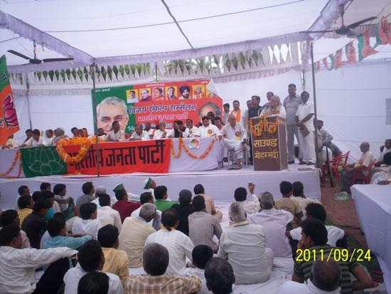 000_0183उन्होंने प्रदेश सरकार पर आरोप लगाते हुए कहा कि आज प्रदेश में जर्जर कानून व्यवस्था है। भ्रष्टाचार चरम पर है बसपा सुप्रीमो को पत्थरों के अलावा कुछ दिखाई नहीं पड़ रहा है। किसान आत्महत्या कर रहा है। खाद, बिजली, कीटनाशक समय पर उपलब्ध नहीं हो पा रहे हंै। फसल आती है तो उसका सही मूल्य प्राप्त नहीं होता तो किसान का मन विद्रोह कर उठता है। तब उनको प्रताड़ित किया जाता है। जनप्रतिनिधि बहू-बेटियों के इज्जत के साथ खिलवाड़ कर रहे हैं। उत्तर प्रदेश में माया सरकार से भ्रष्ट सरकार अबतक कोई नहीं हुई। जनता से मुख्यमंत्री मिलता था यह पहली मुख्यमंत्री है जो जनता से नहीं मिलती। अगर लोकतंत्र बचाना है और भ्रष्टाचार खत्म करना है और माया सरकार को उखाड़ फेंकना होगा।