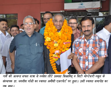 Grand welcome to CMS Founder Dr Jagdish Gandhi on return from Norway