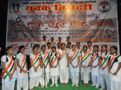 उक्त विचार गांधी भवन में उ0 प्र0 सरकार के राज्यमंत्री एवं कार्यक्रम के मुख्य अतिथि अवधेश कुमार वर्मा ने एक सुर-एक ताल मास्टर ट्रेनर्स प्रशिक्षण शिविर के समापन अवसर पर व्यक्त किये। उन्होंने छात्र/छात्राओं को सफल प्रदर्शन हेतु बधाई दी। इस मौके पर कार्यक्रम की अध्यक्षता करते हुए राष्ट्रीय एकीकरण समिति एवं जिला पंचायत अध्यक्ष बहादुर लाल आजाद ने युवक बिरादरी द्वारा आयोजित इस आयोजन की प्रशंसा करते हुए कहा कि वर्तमान परिवेश में इस प्रकार के आयोजन अत्यंत सामायिक हैं, इस प्रकार के आयोजन प्रतिवर्ष होने चाहिए, ताकि राष्ट्रीय एकता के संदेश को सहजता पूर्वक बालमन तक एवं आमजन तक पहुंचाया जा सके। उन्होंने कहा कि यह मेरा प्रयास रहेगा कि यह कार्यक्रम केवल नगर तक सीमित न रहकर तहसील स्तर पर भी पहुंचाया जाये, साथ ही उन्होंने यह भी आश्वस्त किया कि शहीद दिवस 19 दिसम्बर को एक सुर - एक ताल के वृहद आयोजन में भी उनका हर संभव सहयोग रहेगा।