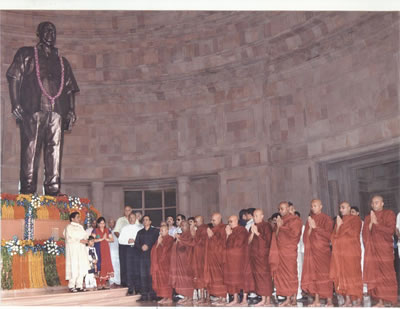 तत्पश्चात मुख्यमंत्री ने उत्तर प्रदेश सरकार द्वारा निर्मित मान्यवर श्री कांशीराम जी स्मारक स्थल पर पहुंचकर वहां पर स्थापित मान्यवर श्री कांशीराम जी की प्रतिमा पर पुष्प अर्पित कर, उन्हें श्रद्धांजलि अर्पित की। इस मौके पर वरिष्ठ मंत्रीगण, अध्यक्ष उ0प्र0 राज्य सलाहकार परिषद, सांसद, विधायकगण, पार्टी पदाधिकारी एवं वरिष्ठ अधिकारियों ने भी बहुजन नायक को श्रद्धा-सुमन अर्पित किये। इस कार्यक्रम में बौद्ध भिक्षुओं द्वारा शांतिपाठ एवं प्रार्थना की गयी, जिसकेे बाद मुख्यमंत्री ी ने सभी बौद्ध भिक्षुओं को चीवर दान किया।