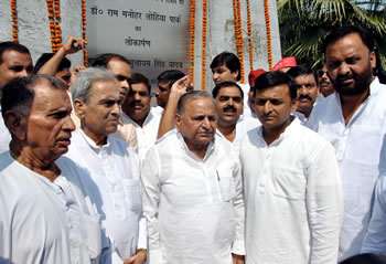 आज लखनऊ में समाजवादी पार्टी के राष्ट्रीय अध्यक्ष श्री मुलायम ंिसंह यादव एवं प्रदेश अध्यक्ष श्री अखिलेश यादव ने लोहिया पार्क, गोमतीनगर और विक्रमादित्य मार्ग स्थित लोहिया ट्रस्ट में स्थापित डा0 लोहिया की मूर्तियों पर माल्यार्पण कर उनका नमन किया। चैक स्थित डा0 लोहिया की मूर्ति पर वरिष्ठ नेता और सांसद श्री भगवती सिंह ने माला चढ़ाई, जब कि गोमतीनगर स्थित लोहिया अस्पताल में डा0 लोहिया की मूर्ति पर नेता विरोधी दल श्री शिवपाल सिंह यादव ने पुष्पाजलि अर्पित की।