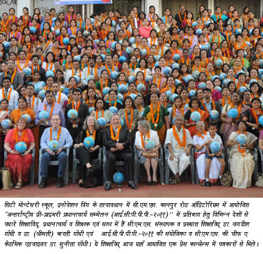 On this occasion, the Organizing Secretary of ICPPP-2011 and Head, Quality Assurance and Innovation Department, CMS, Ms Susmita Basu highlighted the aims and objectives of his conference saying that it provides a platform for educationists of various countries to confer and exchange ideas on new educational strategies and methods at international level. It seeks to draw out the full potential of students by using the right techniques like playway method, Hands on Maths, Music, story telling, pictures, dramatics etc. Further it combines learning with values like kindness, love, compassion, affection, responsibility, cleanliness and so on so that children become both good and smart. Mrs Basu further stated that this international conference is being organized in collaboration with Association Montessori Internationale, Amsterdam, Netherlands.