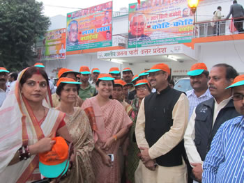 प्रदेश अध्यक्ष सूर्य प्रताप शाही ने कार्यकर्ताओं को सम्बोधित करते हुए कहा, कि प्रदेश में परिस्थितियां भाजपा के अनुकूल है, उत्तर प्रदेश की जनता बसपा सरकार के भ्रष्टाचार से त्रस्त है। वह सपा सरकार के दौरान फैली अरजकता को देख चुकी है। कांग्रेेसी महंगाई ने जनता की थाली की रोटी भी छीन ली है। श्री शाही ने कहा, भाजपा खुदरा व्यापार में विदेशी निवेश के विरोध में उद्योग व्यापार मण्डल द्वारा एक दिसम्बर को आयोजित प्रदेश बंद का समर्थन करेंगी। उन्होंने कार्यकर्ताओं से आहवाहन किया, कि वह 01-15 दिसम्बर तक आयोजित होने वाले ‘उत्तर प्रदेश बचाओं भाजपा लाओं’ और ‘घेरा डालों डेरा डालों’ कार्यक्रमों को सफल बनाने के लिए अभी से लग जाये।