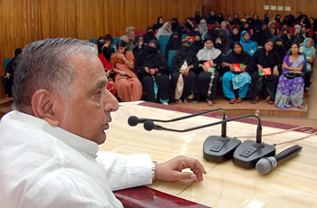 समाजवादी पार्टी के राष्ट्रीय अध्यक्ष श्री मुलायम सिंह यादव के समक्ष आज बड़ी संख्या में मुस्लिम महिलाओं ने पीस पार्टी छोड़कर समाजवादी पार्टी की सदस्यता ली। पीस पार्टी की प्रदेश नेता सुश्री शमा परवीन ने अपने साथ आई महिलाओं की तरफ से संकल्प दुहराया कि वे सब सन् 2012 में प्रदेश में समाजवादी पार्टी की सरकार बनवाने के लिए जीजान से काम करेगी।