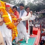 13-11-mehndawaal-gorakhpur-3श्री अखिलेश यादव ने कहा कि बसपा सरकार ने जनता तथा समाजवादियों पर बहुत जोर जुल्म किया है हमारे नेताओं कार्यकर्ताओं को अपमानित एवं प्रताडि़त किया गया है। उन्हें झूठे मुकदमों में फंसाया गया है। अभी भी हमारे कुछ साथी जेल में हैं। समाजवादी पार्टी की सरकार बनते ही झूठे मुकद्मे वापस लिए जाएगेे। जो अधिकारी समाजवादी पार्टी नेताओं को अपमानित करने के दोषी हैं उनको अलग वर्दी पहनाई जाएगी। ताकि दूर से उनकी पहचान हो सके। किसानों को, नौजवानों को राहत देने वाली तमाम योजनाएं चालू की जाएगी। उन्होंने मुस्लिम भाईयों को सच्चर एवं रंगनाथ मिंश्र कमेटी की संस्तुतियों के अनुरूप आरक्षण दिए जाने की वकालत की और मुख्यमंत्री पर कटाक्ष करते हुये कहा कि उनकी चिट्ठी पत्री से आरक्षण मिलने वाला नहीं है।