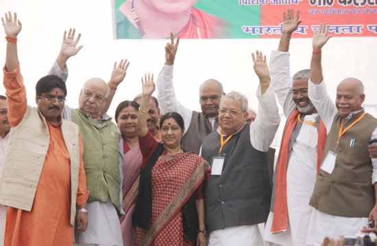 भारतीय जनता पार्टी के राष्ट्रीय उपाध्यक्ष एवं चुनाव अभियान समिति के संयोजक श्री कलराज मिश्र के नेतृत्व में जनस्वाभिमान यात्रा के द्वितीय चरण के पांचवे दिन आज लोक सभा में नेता प्रतिपक्ष भारतीय जनता पार्टी की वरिष्ठ नेता श्रीमती सुषमा स्वराज ने हरदोई के गांधी मैदान में भारी जन सैलाब को सम्बोधित करते हुए कहा कि उ0प्र0 की बसपा सरकार ने लोक लाज को किनारे रख दिया। सवैधानिक मर्यादाओं की धज्जियां उडा दी मूर्ति पार्कों को बनाने में करोड़ों रूप्ये खर्च कर दिये। बदहाल किसानों की समस्याएं नहीं दूर की। जनता बसपा के शासन से आजिज आ चुकी है। प्रदेश की जनता का स्वाभिमान आहत हुआ है। उन्होंेने कहा कि जनता को झकझोरने के लिए एवं जाग्रत करने के लिए पार्टी के पूर्व राष्ट्रीय अध्यक्ष राजनाथ सिंह व राष्ट्रीय उपाध्यक्ष कलराज मिश्र के नेतृत्व में जनस्वाभिमान यात्रा चल रही है जिसे जनता का अभूतपूर्व समर्थन मिल रहा है। मुख्यमंत्री मायावती अपने राजसी अहंकार के कारण अपने साथियों को लज्जित कर रही है। उन्होंने जनता को याद दिलाया कि सपा के कुशासन का अन्त करने के लिए जनता ने बसपा को चुना। उन्होंने जनता का आवाहन करते हुए कहा कि अब परिवर्तन की घडी आ गयी है बसपा के शासन का अन्त करने के लिए कमल के फूल का बटन दबा कर भाजपा को जितायें।