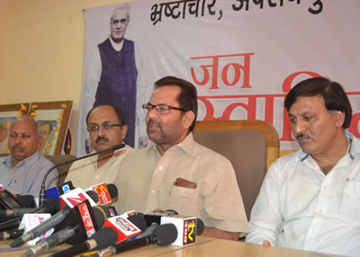 श्री नकवी ने कहा कि उ0प्र0 की जन भावनाओं की प्राथमिकता भ्रष्टाचार तथा अपराध मुक्त प्रदेश के लिए है ना कि आरक्षण, विभाजन जैसे वर्तमान में गैर जरूरी मुद्दों की। ऐसे मुद्दों से उ0प्र0 के लोगों के आर्थिक, सामाजिक, सरोकार और जरूरतों पर एक बार फिर शर्मनाक राजनैतिक हमला करने की कोशिश हो रही है।