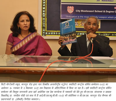pc_qc-1A four-day International Convention on Students’ Quality Control Circles (ICSQCC-2011) is being organized by City Montessori School, Kanpur Road at the campus auditorium from 30 November to 3 December. This historic International Convention will be inaugurated by the Chief Minister of Sabaragamuwa Province of Sri Lanka, Hon’ble Mr Mahiepala Herath and his wife Mrs Ajantha Herath will be the Guest of Honour on the occasion. This information was given by the Convener of ICSQCC-2011 and Principal of CMS Kanpur Road campus Dr (Mrs) Vineeta Kamran at a press conference held here today. Dr Kamran informed that world renowned quality experts and students from 12 countries of the world viz Bangladesh, Cyprus, Mauritius, Nepal, Pakistan, Philippines, Singapore, Sri Lanka, Turkey, UK, USA, and India will be registering their presence and participation in this august event. In this international convention, experts from various countries will be enlightening the audience with their thoughts and ideas. They will give an insight into the world of Quality Circles especially in relation to students. Besides this, students of various countries will participate in the exciting contests during the Quality Summit and spread the message of ‘Quality Concept in Education’ throughout the world.