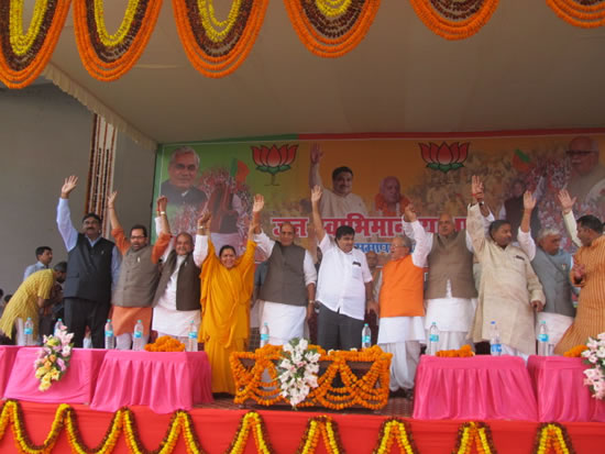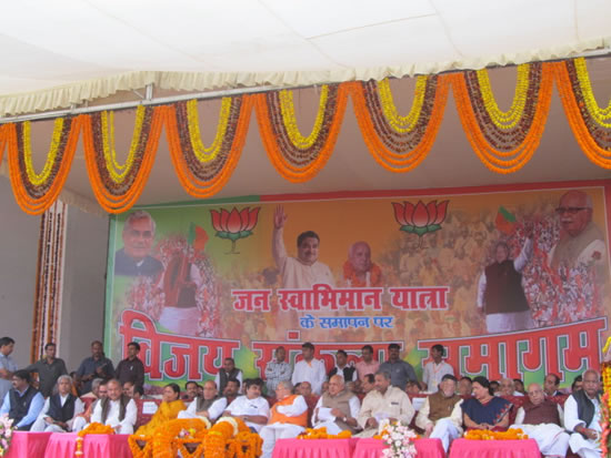जनचेतना यात्रा के नायक पूर्व उप प्रधानमंत्री लालकृष्ण आडवाणी की जन चेतना यात्रा का उ0प्र0 के बिलासपुर, मुण्डा पाण्डेय (मुरादाबाद) में भब्य स्वागत होगा। श्री आडवाणी रामपुर में भाजपा द्वारा आयोजित विशाल जनसभा को संबोधित करने के उपरान्त जेपी नगर, सिम्भावली, हापुड़, पिलकुंआ में स्वागत होगा। वे कल सांयकाल रामलीला मैदान घंटाघर गाजियाबाद में विशाल जनसभा को संबोधित करेंगे। प्रदेश मीडिया हरिश्चन्द्र श्रीवास्तव ने यह जानकारी देते हुए बताया कि जनचेतना यात्रा का उत्तराख्ंाड और उ0प्र0 की सीमा पर भागूवाला (बिजनौर) में प्रदेश अध्यक्ष सूर्य प्रताप शाही ने आज उ0प्र0 में प्रवेश करने पर उनका भब्य स्वागत किया। श्री शाही दि0 19-20 को जनचेतना यात्रा के साथ रहेंगे।