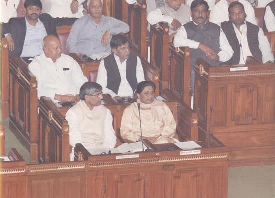 माननीया मुख्यमंत्री जी ने कहा कि इतना ही नहीं, बल्कि कुछ अन्य मामलों को भी लेकर कुछ और भी विधायकों के खिलाफ कार्रवाई की गयी है। उन्होंने इन सब के बारे में विरोधियों से यह सवाल पूछा कि क्या ऐसी स्थिति में वे लोग अब उनकी पार्टी (बी0एस0पी0) के चुने हुए सदस्य नहीं रहे हैं। इसका भी जवाब विरोधी पार्टियां नहीं दे पायेंगी। जबकि इन सब विधायकों के मामले में वास्तविकता यह है कि ये सभी विधायक आज भी उनकी पार्टी के साथ हैं और इनमें से किसी ने भी यह नहीं कहा कि अब वे बी0एस0पी0 के साथ में नहीं हैं। उन्होंने कहा कि ऐसी स्थिति में सभी विरोधी पार्टियों के लोग फिर किस आधार पर कैसे कह सकते हैं कि उनकी पार्टी की सरकार अल्पमत में आ गई है।
