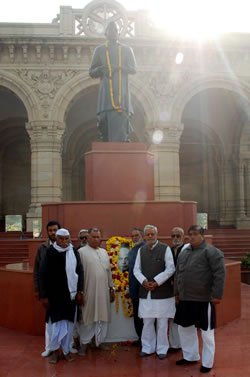 dsc_0208 इस अवसर संसद के केन्द्रीय कक्ष में आयोजित कार्यक्रम में चैधरी चरण सिंह के तैलचित्र पर प्रधानमंत्री डा0 मनमोहन सिंह, लोकसभा अध्यक्ष श्रीमती मीरा कुमार, नागरिक उड्डयन मंत्री चैधरी अजित सिंह, प्रधानमंत्री कार्यालय में राज्यमंत्री वी. नारायणसामी, संसदीय कार्य राज्यमंत्री राजीव शुक्ला, सांसद जयंत चैधरी, भूतपूर्व पेट्रोलियम मंत्री श्री सत्यप्रकाश मालवीय तथा अन्य सांसदों ने माल्यार्पण एवं पुष्पांजलि अर्पित की।