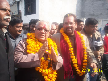 100_2427भारतीय जनता पार्टी के राष्ट्रीय उपाध्यक्ष एवं चुनाव अभियान समिति के अध्यक्ष कलराज मिश्र ने कहा कि उ0प्र0 की जनता परिवर्तन चाहती है। सपा-बसपा के शासन से जनता त्रस्त रही। पार्टी की सत्तापरिवर्तन पद यात्रा के बारे में उन्होंने कहा कि यह पदयात्रा व्यवस्था एवं सत्ता परिवर्तन के लिए है। श्री मिश्र एवं राष्ट्रीय उपाध्यक्ष मुख्तार अब्बास नकवी ने आज राजधानी के सरस्वती शिशु मंदिर ए-ब्लाक इंदिरानगर से पदयात्रा प्रारम्भ की। वहां पर उपस्थित पत्रकारों से वार्ता करते हुए श्री मिश्र ने कहा कि उ0प्र0 की बदहाली के लिए कांगे्रस-सपा-बसपा जिम्मेदार हैं। बसपा के शासन में भ्रष्टाचार, अपराध चरम पर है। सपा के शासन में भी अपराधियों को अपराध करने की ख्ुाली छूट मिली थी। सपा-बसपा दोनों का ही शासन एक जैसा रहा।