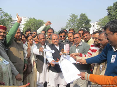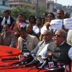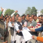 img_7491भाजपा के राष्ट्रीय महामंत्री एवं प्रदेश प्रभारी नरेन्द्र से तोमर ने आज लखनऊ के सुभाष चैक में ’संविधान बचाओ मजहबी आरक्षण हटाओ’ कार्यक्रम में मजहबी आरक्षण को संविधान विरोधी बताते हुए इसे जनता के साथ धोखा बताया। संवैधानिक व्यवस्था को खतरा बताते हुए आज उसकी प्रतियां जलाई। श्री तोमर ने कहा कि कांगे्रस हमेशा से ही समाज को बांटने का ही काम किया है तथा इनके मजले भाई सपा-बसपा कदम-कदम पर कांगे्रस की ही रीति-नीति को समर्थन देकर समाज को एक बार फिर जाति के नाम पर बांट रहे हैं। माया-मुलायम को यह भी डर सता रहा है कि कहीं हम कांगे्रस नीति का विरोध करें तो आय से अधिक संपत्ति के मामले की तलवार हमारे गर्दन तक न आ जाए। कार्यक्रम में भारी भीड़ को संबोधित करते हुए उन्होंने कहा कि भाजपा इसे लागू नहीं होने देगी। हम जन जागरण कर लम्बी लड़ाई लड़ने को भी तैयार हैं। भाजपा का कार्यकर्ता घर-घर इन पार्टियों की कुचाल से अवगत कराएगी। भाजपा नेताओं ने कहा कि यह देश विरोधी, संविधान विरोधी है। फूट डालो राज करो की अंग्रेजों की नीति पर कांगे्रस-सपा-बसपा चल रही है। इन दलों के रवैये से लगता है कि अंगे्रज तो चले गए, ये अगे्रजों के पिट्ठू अभी जाने बाकी हैं।