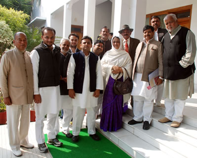 समाजवादी पार्टी में शामिल होने के पूर्व इन सभी ने राष्ट्रीय अध्यक्ष श्री मुलायम सिंह यादव जी से मिलकर उनके नेतृत्व के प्रति आस्था जताई। इस अवसर पर प्रदेश अध्यक्ष श्री अखिलेश यादव, नेता विरोधी दल उत्तर प्रदेश विधान सभा श्री शिवपाल सिंह यादव, प्रदेश प्रवक्ता राजेन्द्र चैधरी तथा कुॅवर बलवीर सिंह भी मौजूद थे।