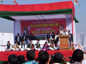 photo-n1प्रदेश के बूटवारे के पक्ष में नहीं हूॅ। बॅटवारे से सम्बन्ध टूट जाते हैं। प्रदेश में सपा की सरकार आई तो शिक्ष्कों की सारी समस्याओं का निराकरण प्राथमिकता से हल किया जायेगा। उक्त बातें समाजवादी पार्टी राष्ट्रीय अध्यक्ष मुलायम सिंह यादव ने जनपद मुख्यालय के ओमनगर स्थित आवास विकास क्षेत्र में जनसभा को को सम्बोधित करते हुए कही। जनपद की पाॅचों विधानसभा के सपा प्रत्याशियों को जिताने की अपील के साथ ही जनपद से अलग हुई विधानसभा सीटों के पार्टी प्रत्याशियों को भी विजयी बनाने की अपील की। अल्प संख्यक मतदाताओं पर डोरे डालते हुए कहा कि सबसे अधिक सरकारी नौकरियों में भर्ती मुसलमानों की हुई। उन्होंने कहा कि जब मैं केन्द्र  सरकार में रक्षा मंत्री था तो डा0 अब्दुल कलाम रक्षा सलाहकार थे। मैंनें उनका नाम राष्ट्रपति पद के लिए प्रस्तावित किया था और आप जानते हैं कि वे देश के राष्ट्रपति बने थे। मंच पर पाॅचों विधान सभा सीटों के प्रत्याशियों सहित एम0एल0सी0 शैलेन्द्र प्रताप सिंह, जिला अध्यक्ष रघुवीर यादव, महिला सपा नेत्री डा0 सुरभि शुक्ला सहित परिष्ठ नेता उपस्थित थे।