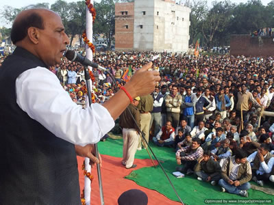 r-optimized2अमृतपुर(फरूर्खाबाद)छिबरामऊ(कन्नौज) लखनऊ 13 फरवरी 2012, भारतीय जनता पार्टी के पूर्व राष्ट्रीय अध्यक्ष राजनाथ सिंह ने कहा कि केन्द्र सरकार की गलत आर्थिक नीतियों के कारण देश मे महंगाई एवं भ्रष्टाचार चरम पर है। कांग्रेस ने सबसे अधिक समय शासन किया है और उसके कई मंत्री भ्रष्टाचार में फंसे, जबकि भाजपानीत सरकार के छह वर्षों के शासन में उसका एक भी मंत्री, सांसद या विधायक भ्रष्टाचार में लिप्त नहीं पाया गया। सपा और बसपा के नेता जेल जाने के डर से केन्द्र में कांग्रेस के नेतृत्व वाली सरकार को समर्थन दे रहे हैं। आज प्रदेश की बदहाली, गरीबी और पिछड़ेपन के लिए पूववर्ती कांगे्रस-सपा-बसपा को जिम्मेदार ठहराया। उन्होंने कहा कि उत्तर प्रदेश में फैले भ्रष्टाचार के लिए कांग्रेस, समाजवादी पार्टी एवं बहुजन समाज पार्टी की नीतियां जिम्मेदार हैं। राज्य की बसपा सरकार हर मोर्चे पर विफल रही है और प्रदेश में बढ़ते अपराध तथा भ्रष्टाचार के कारण आम जनता परेशान हैं।