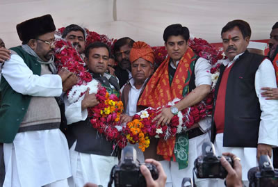 16-02-dसमाजवादी पार्टी के प्रदेश अध्यक्ष श्री अखिलेश यादव ने कहा है कि प्रदेश में हो रहे चुनाव के तीसरे चरण तक पहुॅचते-पहुॅचते 2012 का मिशन लेकर निकले लोग गुस्से में कुर्ता उतार रहे है। प्रदेश के मतदाताओं ने समाजवादी पार्टी को प्रचण्ड समर्थन देकर चैथे चरण का आगाज कर दिया है। लेकिन उधार के कमान्डरों से जंग नहीं जीती जाती। कांग्रेस बसपा ने समाजवादी पार्टी को सरकार बनाने से रोकने के लिए उधार के प्रत्याशियों को मैदान में उतारा है। प्रदेश के लोगांें पर पांच वर्श तक जुल्म अत्याचार, उत्पीड़न करने वाली सरकार के दिन थोड़े बचे हैं। बसपा की भ्रश्ट सरकार को उखाड़ फेंको।