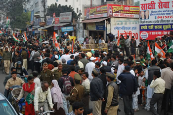 लखनऊ उत्तर के सियासी माहौल को गरमातें हुये राहुल गांधी का काफिला जब आगे बढ़ा तो उनके पीछे लोगो का हुजूम दौड़ पड़ा। उन्हें देखने के लिये सड़कों के किनारे भारी भीड़ उमड़ पड़ी। व्यापारियों ने अपनी दुकानें छोड़कर उनका स्वागत किया। राहुल गांधी ने सभी का अभिवादन स्वीकारते हुये लोगों से पार्टी प्रत्याषी डा. नीरज बोरा को जिताने की अपील की।