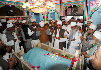 18-02-b लखनऊ में माल एवेन्यू स्थित हजरत दादा मियां के 104वें उर्स के मौके पर विधान सभा में नेता विरोधी दल श्री शिवपाल सिंह यादव ने प्रदेश प्रवक्ता श्री राजेन्द्र चैधरी, विधायक श्री आरिफ अनवर हाशिमी और सज्जादानशीन जनाब सबाहत हसन शाह और चचा मियां जनाब हसन शाह साहेब के साथ कुलशरीफ में शिरकत की और दादामियां के हुजूर में चादर शरीफ पेश करते हुए मुल्क में अमन चैन के लिए दुआ की। हजरत सूफी सबाहत हसन शाह ने इस हिन्दू मुस्लिम भाईचारे के साथ प्रदेश में श्री मुलायम सिंह यादव के नेतृत्व में समाजवादी पार्टी की सरकार बनने के लिए बेहतर मिसाल बताया। दादामियां के उर्स पर अपनी अकीदत के अनुसार लाखों हिन्दू-मुस्लिम जायरीन हर वर्ष आते हैं।