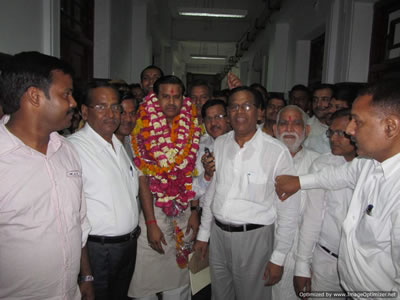 विधान परिषद में निर्विरोध निर्वाचित होने पर पार्टी कार्यकर्ताओं ने गहरा हर्ष
