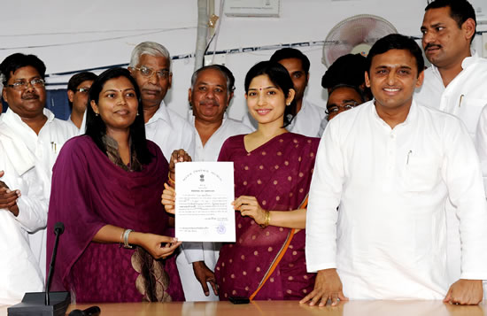 12-06-d कन्नौज की जिलाधिकारी सुश्री सेल्वा कुमारी जे ने आज मुख्यमंत्री श्री अखिलेश यादव की विशिष्ट उपस्थिति में कन्नौज लोकसभा के उपचुनाव में निर्विरोध जीत का ऐतिहासिक रिकार्ड बनाने पर समाजवादी पार्टी प्रत्याशी श्रीमती डिम्पल यादव को निर्वाचन प्रमाण पत्र प्रदान किया।
