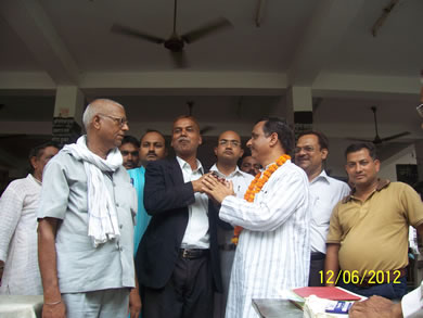 pic7_12_june-_12निवर्तमान महापौर व भारतीय जनता पार्टी के लखनऊ से महापौर पद के प्रत्याशी डाॅ0 दिनेश शर्मा ने नादर गंज स्थित सीपेड इंजीनियरिंग कालेज से आज के अपने जनसम्पर्क अभियान की शुरूआत की। नादरगंज पहुंचने पर राम नरेश यादव, अरविंद शर्मा, कैलाश यादव, वीरेन्द्र तिवारी, वेद यादव सहित सैकड़ों की संख्या में उपस्थित जनसमूह ने डाॅ0 दिनेश शर्मा का फूल मालाओं से स्वागत किया। डाॅ0 दिनेश शर्मा ने यहां पर एक विशाल जनसमूह को सम्बोधित भी किया। यहां से डाॅ0 दिनेश शर्मा सरोजनी नगर द्वितीय के भाजपा पार्षद पद के प्रत्याशी रवि कुमार के कार्यालय का उद्घाटन करने पहुंचे। यहां पर रमाशंकर त्रिपाठी के नेतृत्व में बड़ी संख्या में क्षेत्रीय जनता उपस्थित थी। इसी वार्ड में पहाड़ी समाज के लोगों ने एक बड़ी बैठक करके डाॅ0 दिनेश शर्मा व भाजपा पार्षद पद के प्रत्याशी को अपना पूर्ण समर्थन देने का संकल्प लिया। यहां पर गणेश जोशी सहित बड़ी संख्या में पहाड़ी समाज के लोग उपस्थित थे। यहां से डाॅ0 दिनेश शर्मा भाजपा कार्यकर्ता सम्मेलन में सम्मिलित होने पहुंचे। यहां पर बड़ी संख्या मंे उपस्थित कार्यकर्ताओं से कलराज मिश्र, सूर्य प्रताप शाही, डाॅ0 दिनेश शर्मा ने चुनावी तैयारी का जायजा लिया तथा उन्हें चुनाव की बारीकियों से अवगत कराया। डाॅ0 दिनेश शर्मा ने कचहरी पहुंचकर अधिवक्ताओं से जनसम्पर्क किया। यहां पर लखनऊ बार के अध्यक्ष अनिल बाजपेई, सचिव जी0एन0 शुक्ला, उपाध्यक्ष दयाशंकर पाण्डेय, संयुक्त सचिव देशराज वर्मा, अवध बार के पूर्व अध्यक्ष एवं पूर्व सांसद राघवेन्द्र सिंह, मनोहर सिंह, अवनीन्द्र सिंह, राजेश कटियार, शैलेन्द्र सिंह चैहान, नागेश अवस्थी, राम प्रताप सिंह, डाॅ0 शैलेन्द्र शर्मा ‘अटल’ एवं सूर्यभान पाण्डेय ने डाॅ0 दिनेश शर्मा का स्वागत किया व लखनऊ अवध बार द्वारा पूर्ण समर्थन देने का वायदा किया। यहां पर एक जनसभा को भी डाॅ0 दिनेश शर्मा ने सम्बोधित किया। इसका संचालन अधिवक्ता मनोज त्रिपाठी ने किया। लखनऊ बार के पदाधिकारियों ने हाई कोर्ट चैराहे का नाम वीरेन्द्र भाटिया चैराहा रखने, लखनऊ बार के पास बोरिंग व पानी की टंकी की व्यवस्था कराने एवं डाॅ0 राजेन्द्र प्रसाद जी की प्रतिमा के ऊपर छतरी के निर्माण के लिए डाॅ0 दिनेश शर्मा के प्रति आभार प्रकट किया। डाॅ0 दिनेश शर्मा ने अपने उद्बोधन में अधिवक्ताओं को उनकी हर समस्या के निराकरण का आश्वासन दिया। डाॅ0 दिनेश शर्मा ने अमीनाबाद के व्यापारियों के मध्य पहुंचकर उनसे अपने पक्ष में मतदान करने की अपील की। अमीनाबाद पहुंचने पर व्यापारी नेता अनिल बजाज, अशोक मोतियानी, नानक चन्द्र लखमानी, नरेश सोनकर, हृदय नारायण श्रीवास्तव, पूर्व पार्षद पंकज भार्गव, अरूण मिश्रा सहित बड़ी संख्या में व्यापार