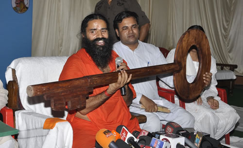 बाबा रामदेव प्रेस वार्ता करते