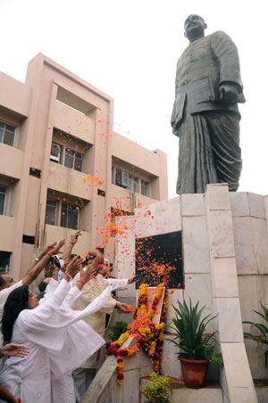 श्यमा प्रसाद मुखर्जी जन्म दिवस पर उनके प्रतिमा पर पुष्प चडाते भारतीय जनता पार्टी के लोग