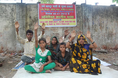 लखनऊ विधान सभा के सामने रायबरेली से आया  पीढित परिवार धरना देता
