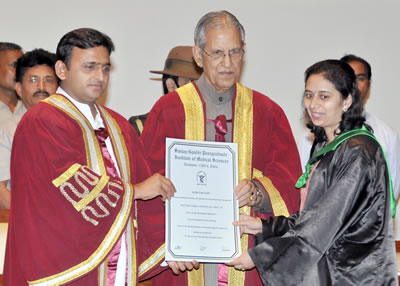 श्री बी.एल.जोशी आज संजय गांधी स्नातकोत्तर आयुर्विज्ञान संस्थान के 17वें दीक्षान्त समारोह को सम्बोधित कर रहे थे। दीक्षान्त समारोह के मुख्य अतिथि उत्तर प्रदेश के मुख्यमंत्री श्री अखिलेश यादव ने संस्थान में डिपार्टमेन्ट आफ इमरजेंसी मेडिसिन के विस्तार तथा एडवांस्ड आॅप्थाल्मिक सेन्टर खोले जाने की घोषणा की। उन्होंने कहा कि इन विभागों के लिए जितने भी धन की आवश्यकता होगी वह उपलब्ध कराया जाएगा। चिकित्सा विज्ञान के क्षेत्र में शोध के लिए भी राज्य सरकार धन की कमी नहीं होने देगी, क्योंकि इस संस्थान की इसी बल पर पूरे देश में एक विशिष्ट पहचान है।