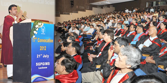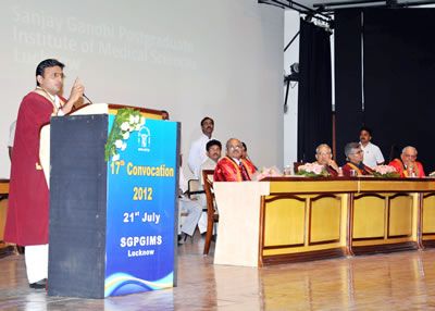 प्रदेश के मुख्य सचिव श्री जावेद उस्मानी ने दीक्षान्त समारोह को सम्बोधित करते हुए कहा कि एस.जी.पी.जी.आई. 25 वर्षों से कम समय में चिकित्सा विज्ञान के क्षेत्र में जो प्रतिष्ठा हासिल कर ली है, वह प्रशंसनीय है। पड़ोसी देशों नेपाल और बांग्लादेश तक से मरीज यहां इलाज कराने आ रहे हैं। उन्होंने कहा कि मुख्यमंत्री के प्रयास से इस संस्थान में ‘कामधेनु अतिनिर्धन सहायता कोष’ शुरू हो गया है, ताकि गरीबी रेखा से नीचे जीवनयापन करने वालों को भी उच्च कोटि की चिकित्सा निःशुल्क प्राप्त हो सके। उन्होंने कहा कि आर्थिक संसाधनों की कमी के बावजूद प्रदेश सरकार इस संस्थान की विशिष्टता बनाए रखने के लिए प्रतिबद्ध है।